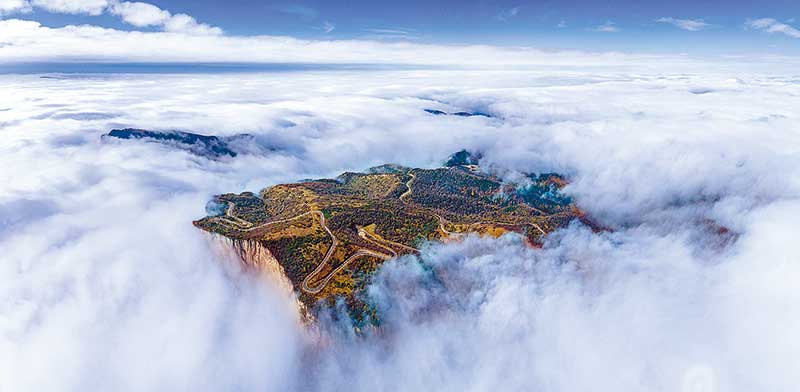 左权县太行龙泉旅游区磅礴的云海漫过层林尽染的群山