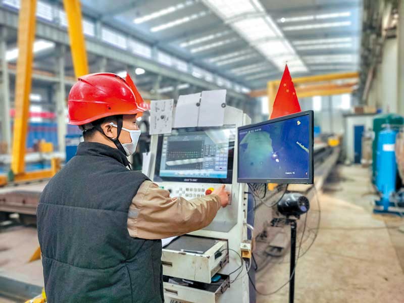 工人师傅正在操作电脑对设备进行激光切割