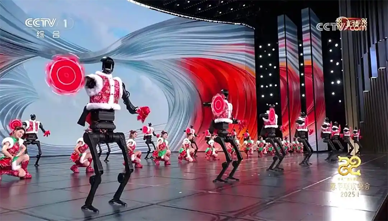 △今年春晚,宇树科技人形机器人身穿东北特色的花棉袄扭秧歌,呈现出全新视觉效果。