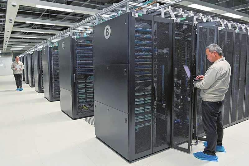 位于山西转型综改示范区的佳华物联网大数据中心机房内,工作人员正在进行日常设备维护。