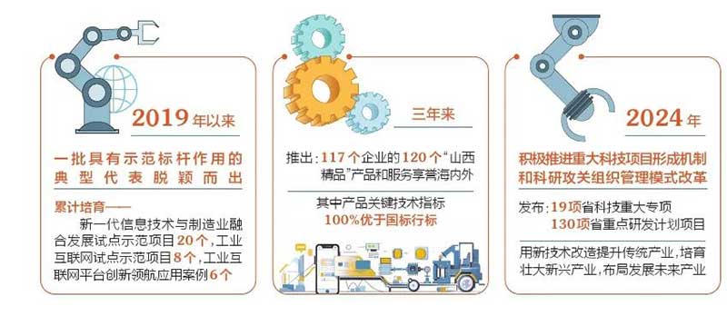 不断完善政策体系。《山西省制造业数字化转型行动计划(2024—2030年)》《山西省数智深度赋能新型工业化发展2024年行动计划》《山西省推进传统产业智改数转网联2024年行动计划》等相继出台,持续加快5G网络、工业互联网等新一代信息技术应用推广。