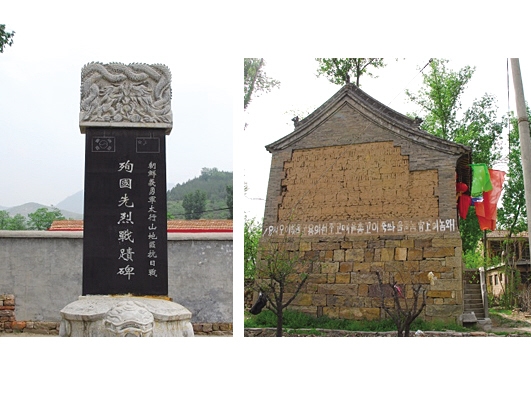 左图为朝鲜义勇军殉国先烈战绩碑;右图为云头底朝鲜义勇军华北支队旧址