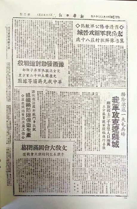 《新华日报》(华北版)通讯《我军攻克辽县城》