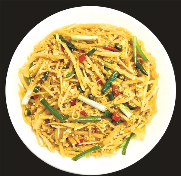 榆社盛产优质小米,用蒸好的小米炒土豆丝,是当地人餐桌上常见的一道地方美食。