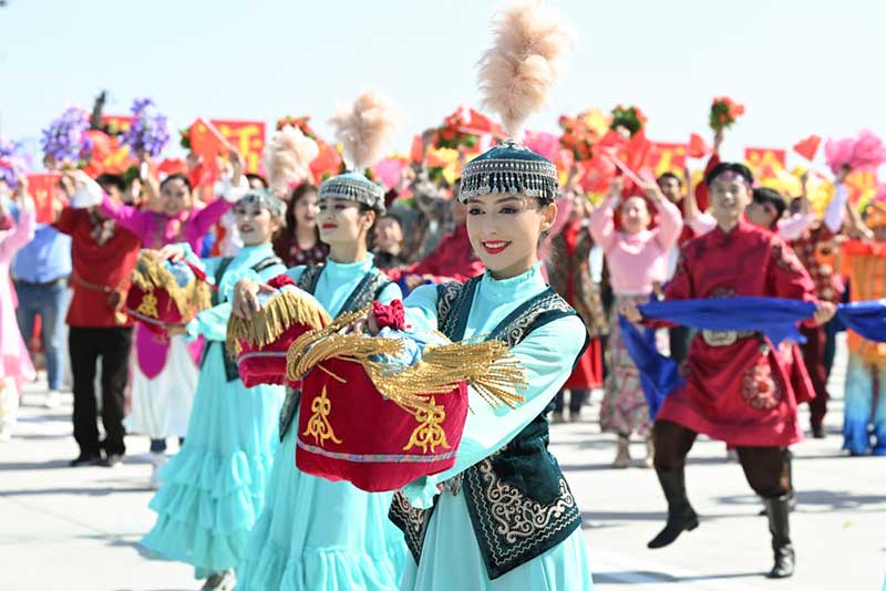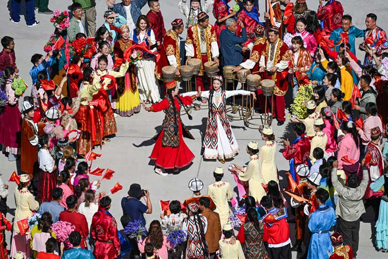 新华社记者的镜头里,各族儿女簇拥在一起,欢笑在一起;明艳的服饰、热烈的歌舞,无不展现出团结与奋进的力量。