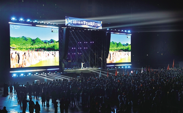 “10、9、8、7……”伴随全场师生齐声倒数,激动人心的声浪冲破夜空,现场气氛瞬间被点燃。灯光渐暗,光影在舞台中央汇聚,激昂的音乐骤然响起,一场视听盛宴正式拉开帷幕。