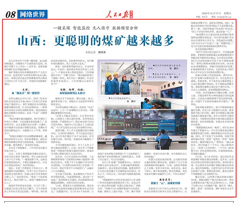在几百米的井下实现一键采煤、5G远程视频通话,对煤炭生产全流程进行监控,机械手代替了人工劳动……近年来,这些更聪明的煤矿在山西越来越多。