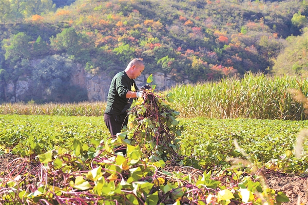 昔阳县东冶头镇东固壁村村民将红薯进行分拣、装袋。 本报通讯员 李鹏 郑晓飞 摄