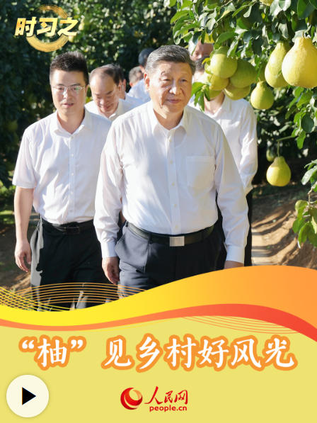 2025年11月7日,习近平总书记在广东省梅州市梅县区雁洋镇考察南福金柚种植基地,了解当地推进乡村全面振兴等情况。