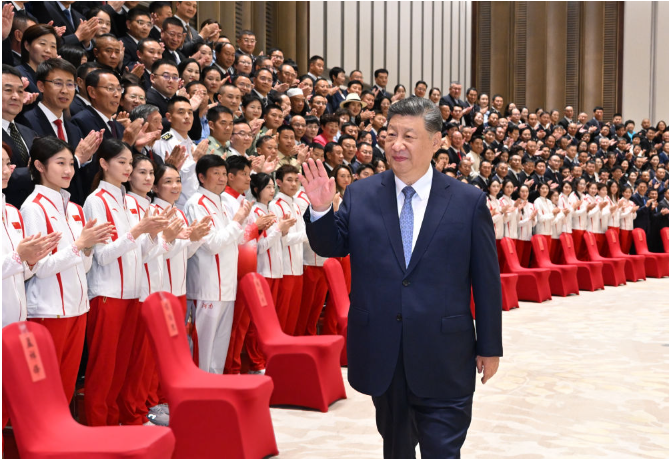 习近平总书记亲切接见全国群众体育先进单位、先进个人代表和全国体育系统先进集体、先进个人代表,勉励他们奋力拼搏、再创佳绩,为建设体育强国作出新贡献。