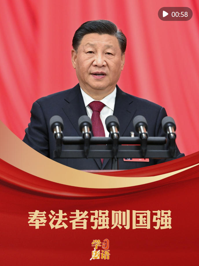 “奉法者强则国强,奉法者弱则国弱。”党的十八大以来,以习近平同志为核心的党中央掌舵法治中国建设正确航向,开启全面依法治国新时代。12月4日第十二个国家宪法日到来之际,一起重温总书记的谆谆嘱托,自觉尊法学法守法用法,汇聚起法治中国建设的澎湃力量。