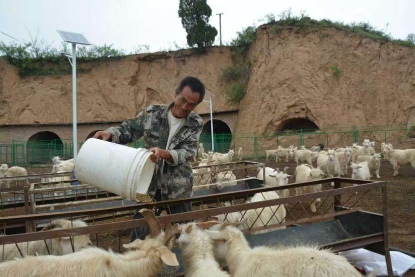 岭上村养羊户马宝新正在给“黄河滩羊”喂饲料。侯耀强摄