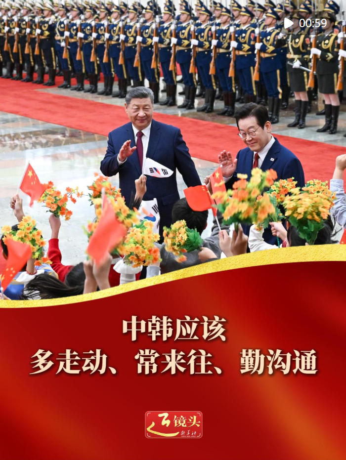 “多走动、常来往、勤沟通”,元首外交引领,推动中韩战略合作伙伴关系沿着健康轨道迈进,切实增进两国人民福祉,为地区乃至世界和平与发展正向赋能。