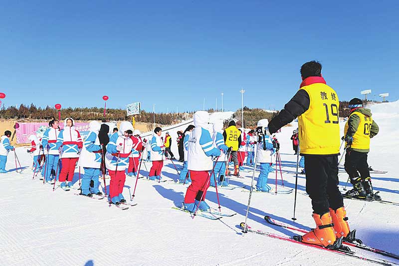 青少年在晋中九龙国际滑雪场体验冰雪带来的乐趣。本报记者王昕摄