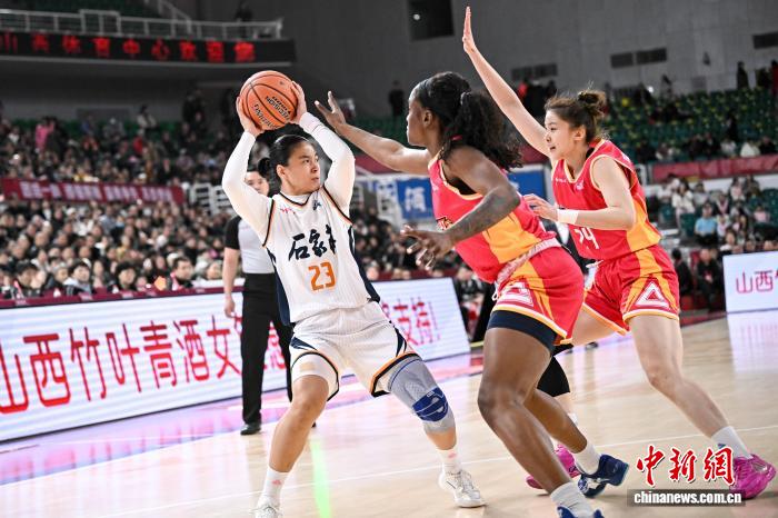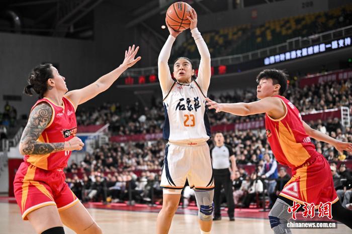 2月1日,石家庄队球员王丽丽(白衣)在比赛中投篮。当日,在太原举行的2025-2026赛季中国女子篮球联赛(WCBA)常规赛第22轮比赛中,山西竹叶青酒队主场以97比94战胜石家庄英励队,以18胜4负的战绩获得常规赛冠军。中新社记者 韦亮 摄