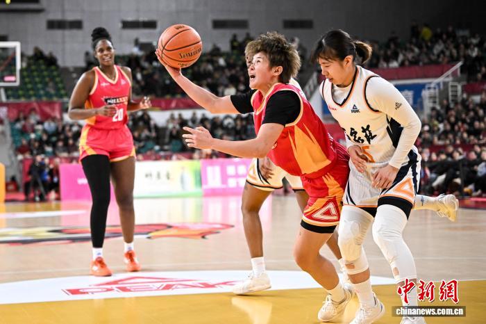 2月1日,山西队球员宋珂昕(红衣)在比赛中上篮。当日,在太原举行的2025-2026赛季中国女子篮球联赛(WCBA)常规赛第22轮比赛中,山西竹叶青酒队主场以97比94战胜石家庄英励队,以18胜4负的战绩获得常规赛冠军。中新社记者 韦亮 摄
