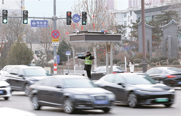 交警范英帅疏堵保畅护安全。