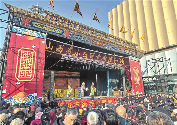 2月17日,榆次新建万达广场上演晋剧经典剧目《打金枝》,吸引群众前来观看。记者 刘勇 摄
