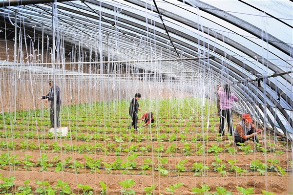 2月27日,左权县寒王乡下丰堠村禾丰瑞智慧种植园的温室内一派繁忙。菜农们抢抓农时,对1.5万余株长势喜人的西红柿、黄瓜、豆角等菜苗进行吊绳管护,引导秧苗规范生长。后续还将通过精细化科学管理,确保新鲜菜品在5月份上市供应。