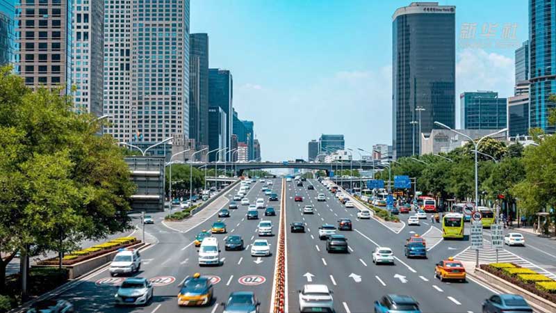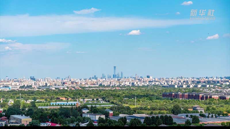 在北京登高远眺,气势恢宏的故宫博物院、楼宇林立的CBD、挺拔矗立的奥林匹克塔,一处处城市地标与澄澈蓝天相映成画。