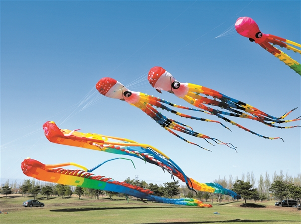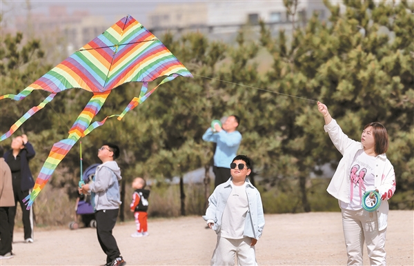 市民在平遥古城迎薰公园乐享春日户外美好时光