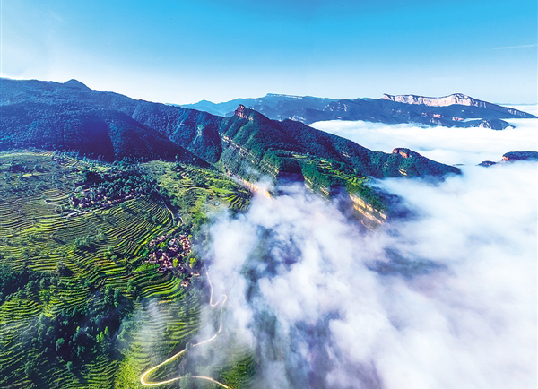 左权县太行鳌峰山顶 一场秋雨初歇 壮美的云海景观徐徐铺展